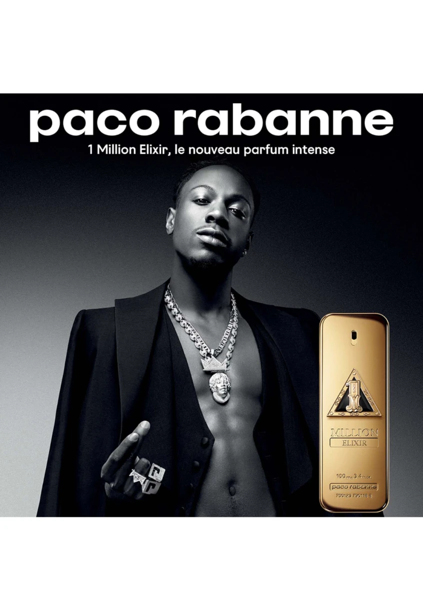 Succombez au charme incomparable du nouveau parfum ambré pour homme, signé Paco Rabanne. Puissant, mystérieux, intrigant, 1 Million Elixir se pare de son écrin luxueux emblématique : un flacon de parfum en forme de lingot d’or, habillé d’un triangle noir profond. Des notes de tête d’osmanthus et davana s’enrobent de rose de Damas et de cèdre, sur fond de fève tonka et de vanille. Parfum pour homme aux ingrédients récoltés dans le monde entier, 1 Million Elixir se porte comme un bijou. Un talisman.